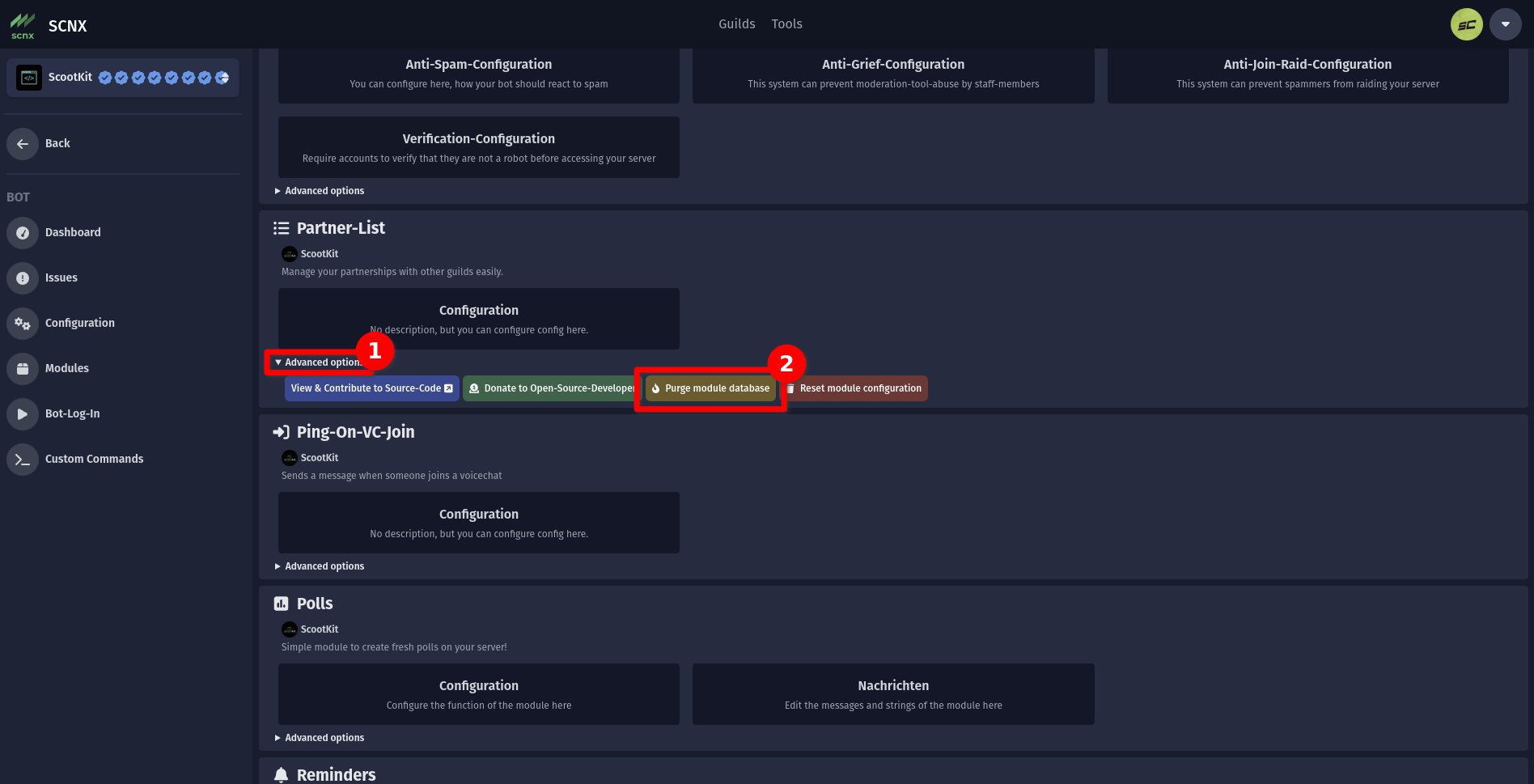 3. Click on "Purge module database".